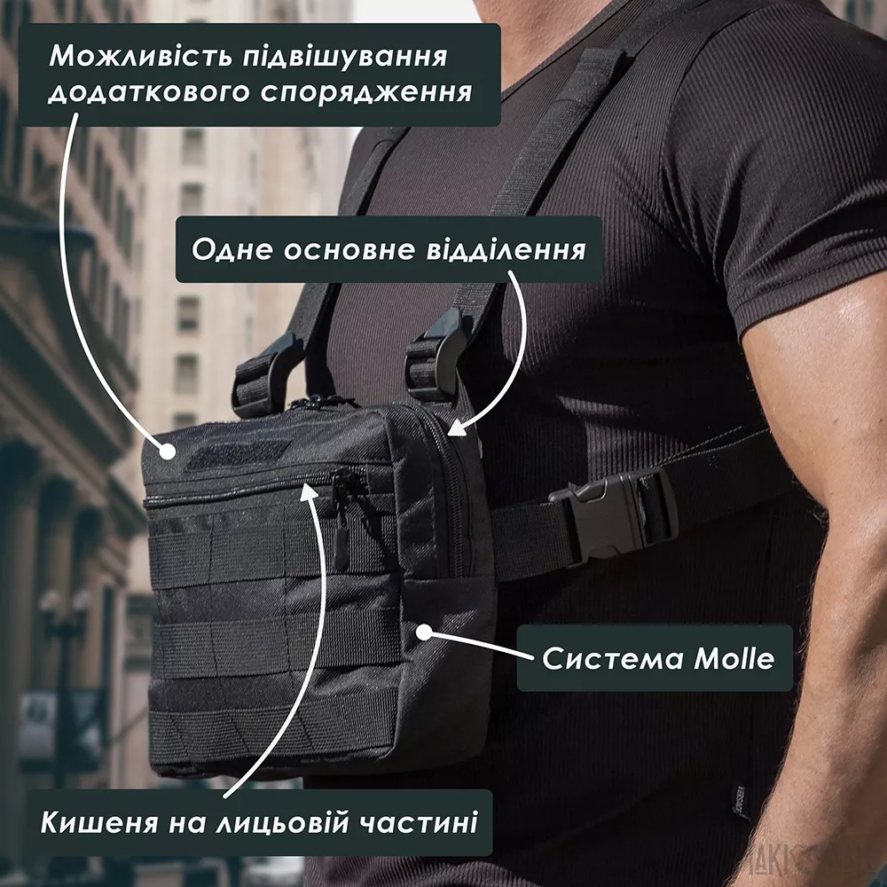 Тактическая нагрудная сумка с Cordura 1000D, мужская разгрузка черная