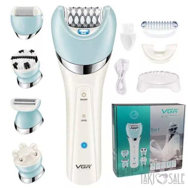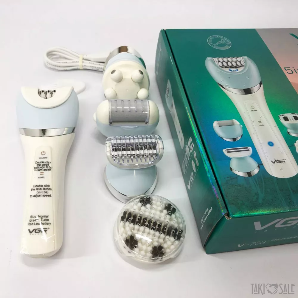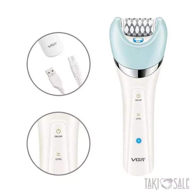 Эпилятор женский с триммером VGR для удаления волос на теле аккумуляторный пемза массажная насадка