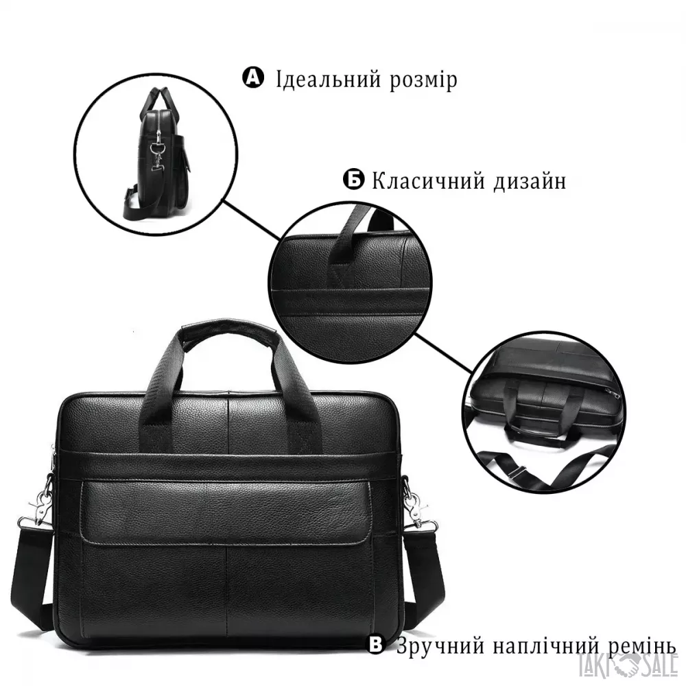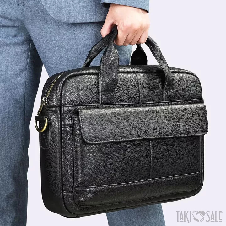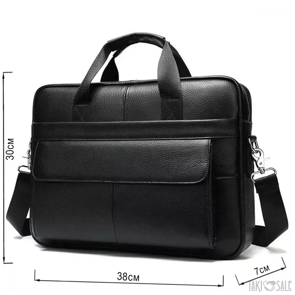 Изящная и вместительная мужская/женская сумка, выполненная из премиальной натуральной кожи (флотар) черного цвета. Изделие сочетает стильный дизайн и высокую функциональность, имеет надежную металлическую фурнитуру и удобную организацию внутреннего пространства. Идеально подходит для работы, деловых встреч или повседневного использования.