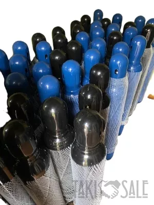 Пропонуємо комплект обладнання для роботи з газами, що включає балон об'ємом 10 літрів, редуктор, рукав та хомути – все повністю готове до використання.