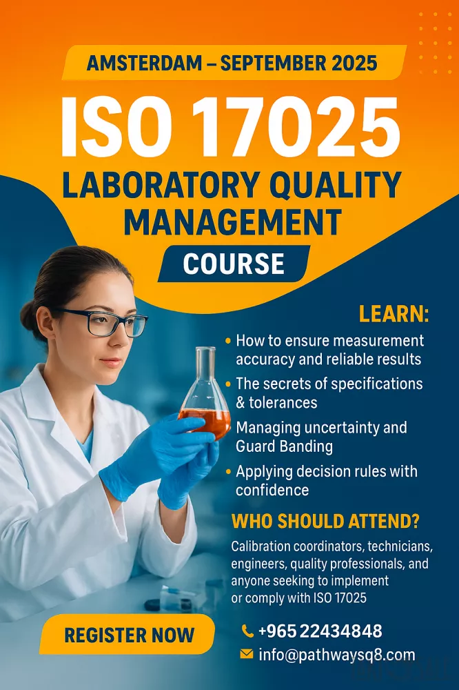 πŸ”¬ Join our ISO 17025 Laboratory Quality Management Course in Amsterdam – September 2025 and learn: