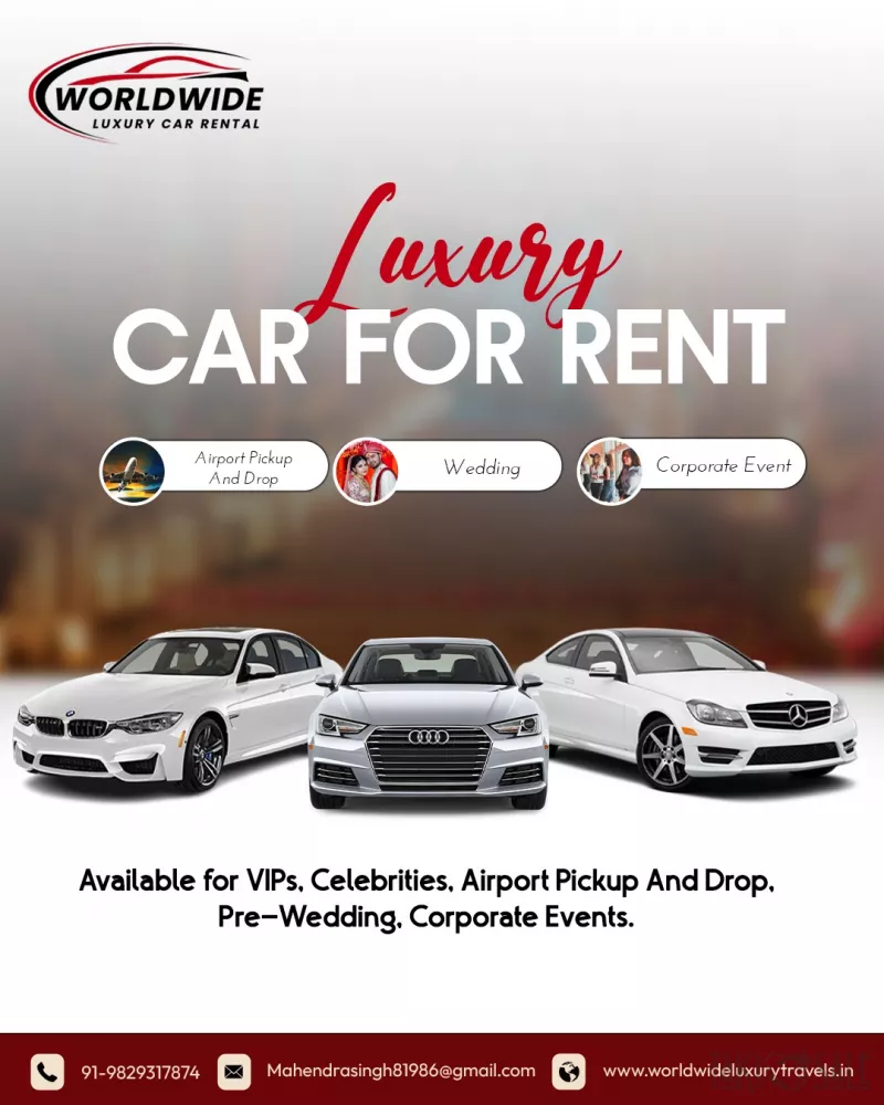 Discover premium travel with Luxury Car for Rent in Jaipur by World Wide Luxury Travels. Whether you need a luxury car for business, sightseeing, or a special occasion, we have a stunning collection of high-end vehicles to match your style. Our well-maintained cars and skilled chauffeurs ensure a safe, comfortable, and stylish ride across the city. Call 9829317874 for easy booking and exceptional service. We guarantee affordable rates, timely service, and unmatched travel experiences. Choose us to elevate your journeys and explore Jaipur in sheer luxury and elegance with our top-rated rental services.
