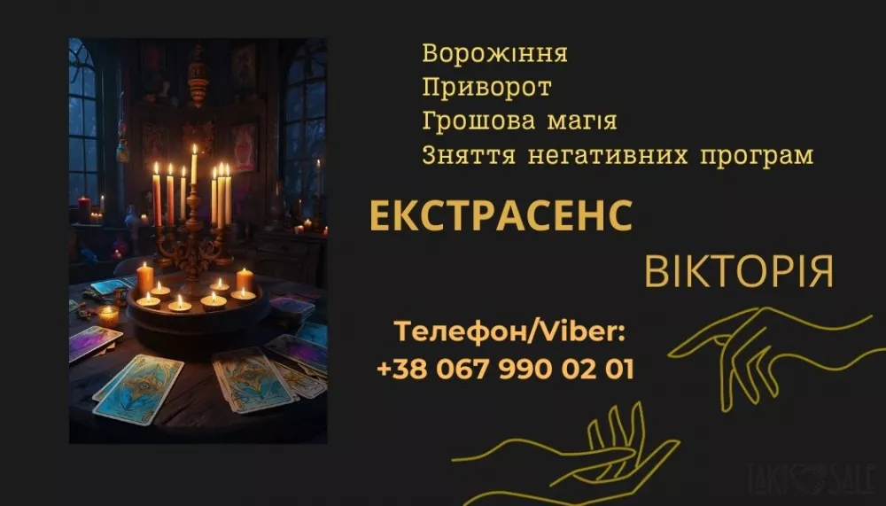 Мене звуть Вікторія, і я практикую магію та езотеричні науки вже багато років. За цей час я допомогла багатьом людям знайти гармонію, впоратися з особистими і фінансовими проблемами, відновити стосунки і змінити свою долю. Моє завдання - допомогти кожному знайти свій шлях до щастя, використовуючи безпечні та ефективні методи.