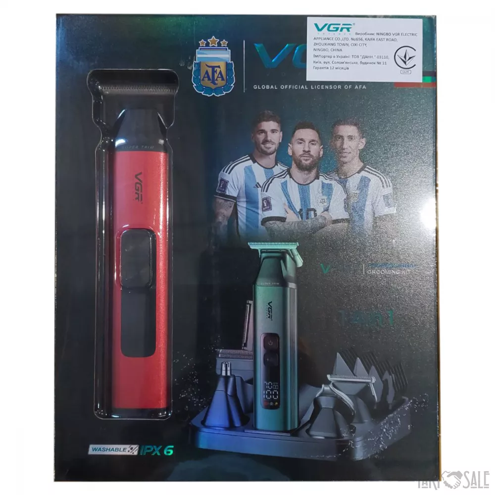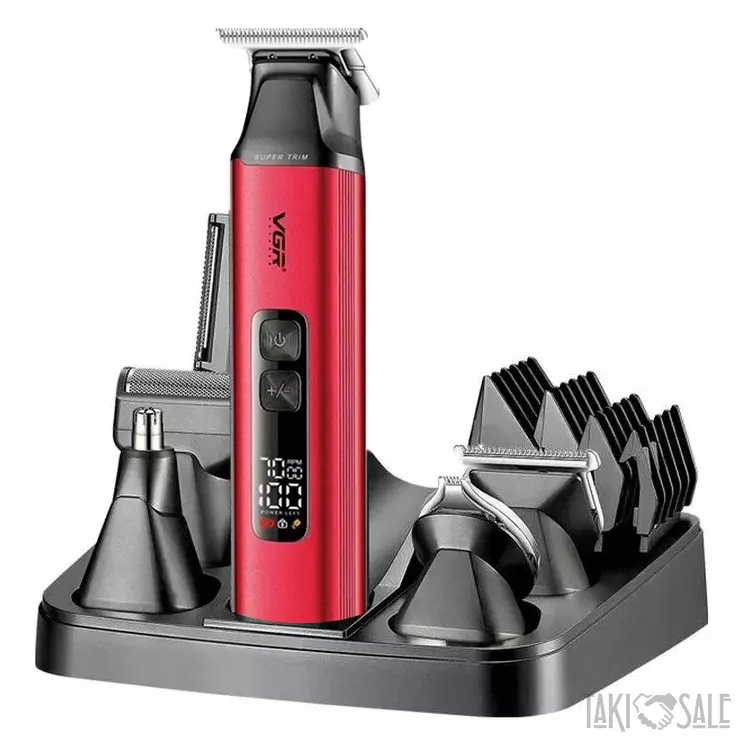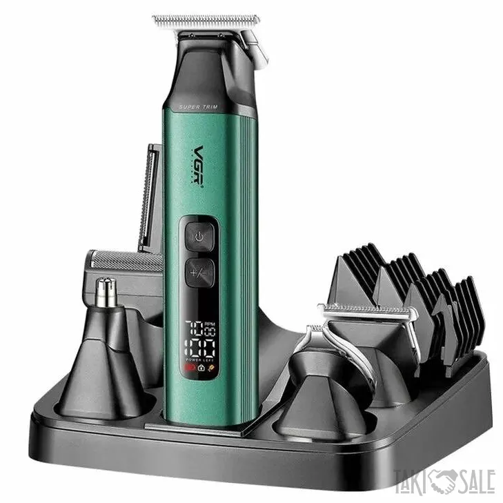 VGR V профессиональный набор для груминга формата 6 в 1, разработанный для тех, кто нуждается не просто в функциональности, а в полной тактической готовности к уходу за собой. Оснащен линейкой насадок под разные задачи: от точной окантовки до глубокого тримминга, включая насадки для тела, носа и ушей. Все это на базе эргономичного корпуса с цифровым дисплеем, демонстрирующим уровень заряда и рабочий статус.