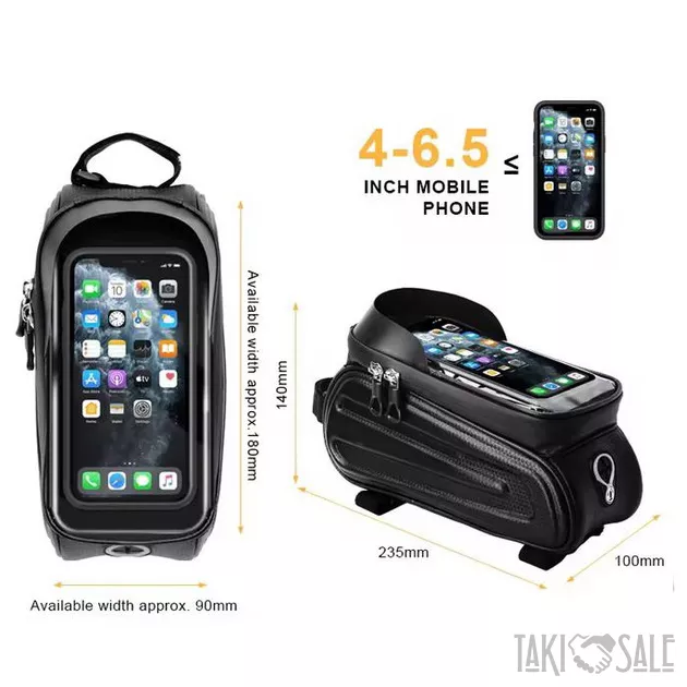 Велосумка с отделением под смартфон. Велоссумка крепится на верхнюю трубу рамы велосипеда с помощью застежек на липучках.