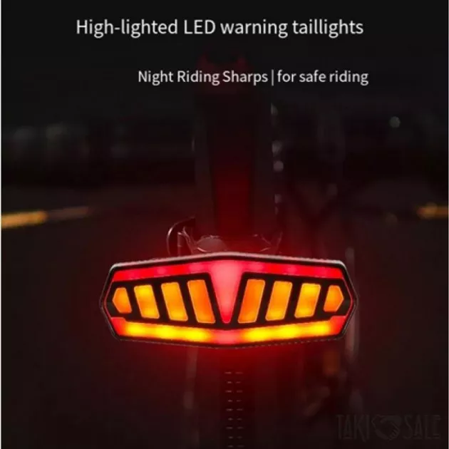 Велофонарь с указанием поворотов (red+yellow),ЗУ Type-C.Мигалка с аккумулятором на велосипед