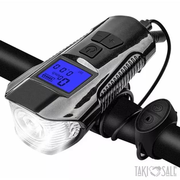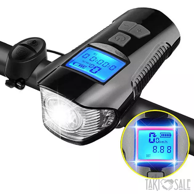 Велосипедный фонарь со светодиодами Т6 с дополнительной функцией велокомпьютера, габаритными огнями и велозвонка. Обеспечивает безопасность велосипедиста в темное время суток. Фонарь оснащен встроенным аккумулятором, который можно подзарядить от зарядного устройства через порт microUSB. Водонепроницаем, наличие индикации заряда. Звонок оснащен шестью различными видами сигнала. Велокомпьютер может предоставлять 5 видов информации о поездке.