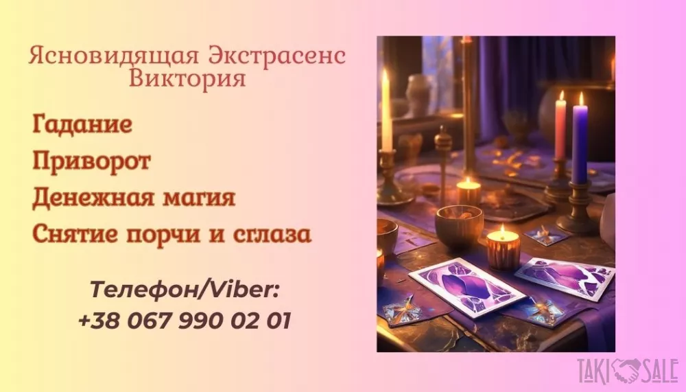Как вернуть любимого человека? Как избавиться от порчи и сглаза? Как привлечь удачу и деньги? Как улучшить отношения в семье? Как избавиться от проблем в личной жизни и карьере? Как провести приворот или обрести счастье? Если эти вопросы беспокоят вас, то я готова помочь! Меня зовут Виктория, и я занимаюсь магией и эзотерическими практиками уже много лет. За это время я помогла тысячам людей найти ответы на важнейшие вопросы, изменить свою жизнь и преодолеть трудности.