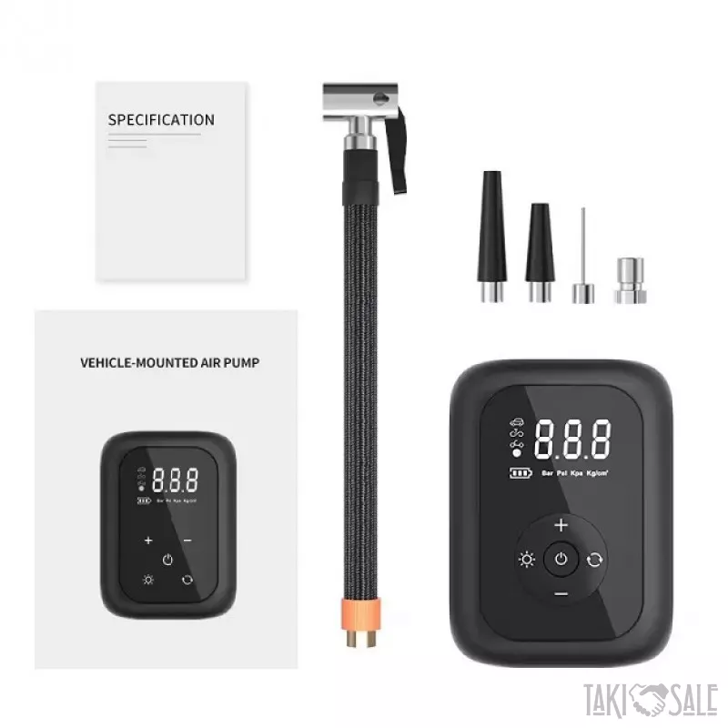 Автомобильный/Бытовой аккумуляторный компрессор -предназначен для накачки шин транспортных средств (легковых автомобилей, мотоциклов, скутеров, самокатов, велосипедов и пр.), матрасов, мячей и прочих надувных изделий.