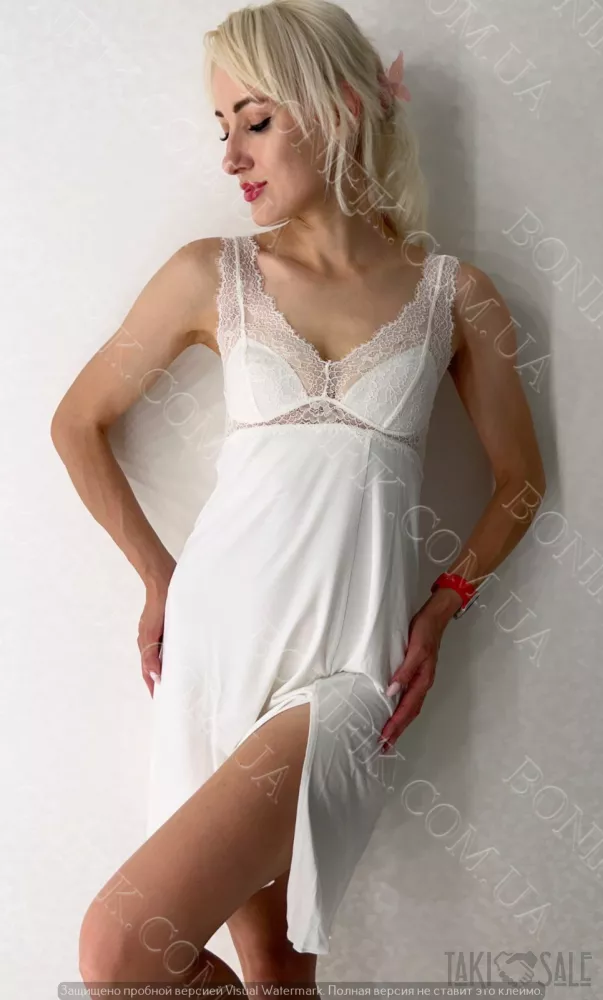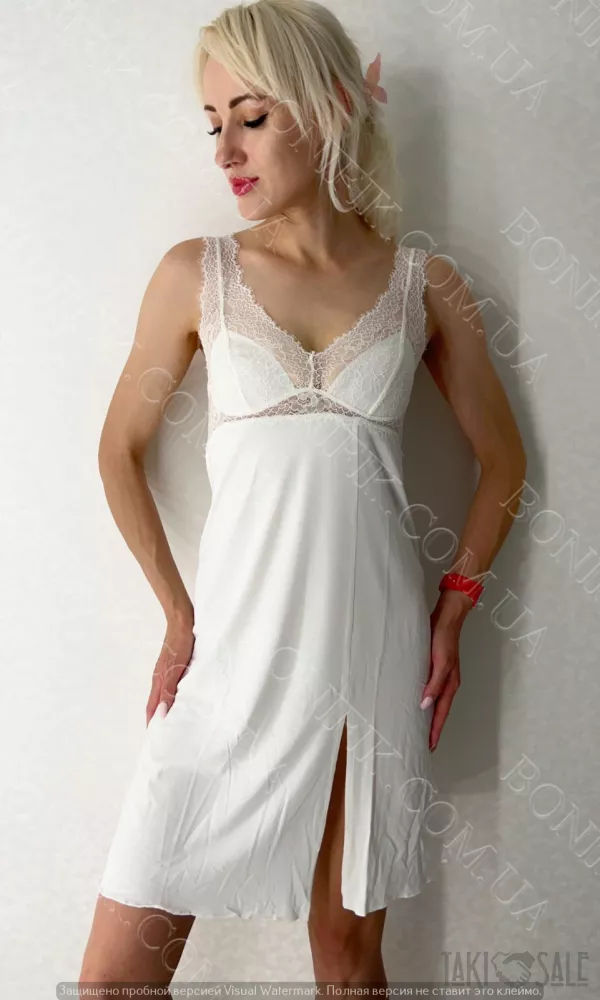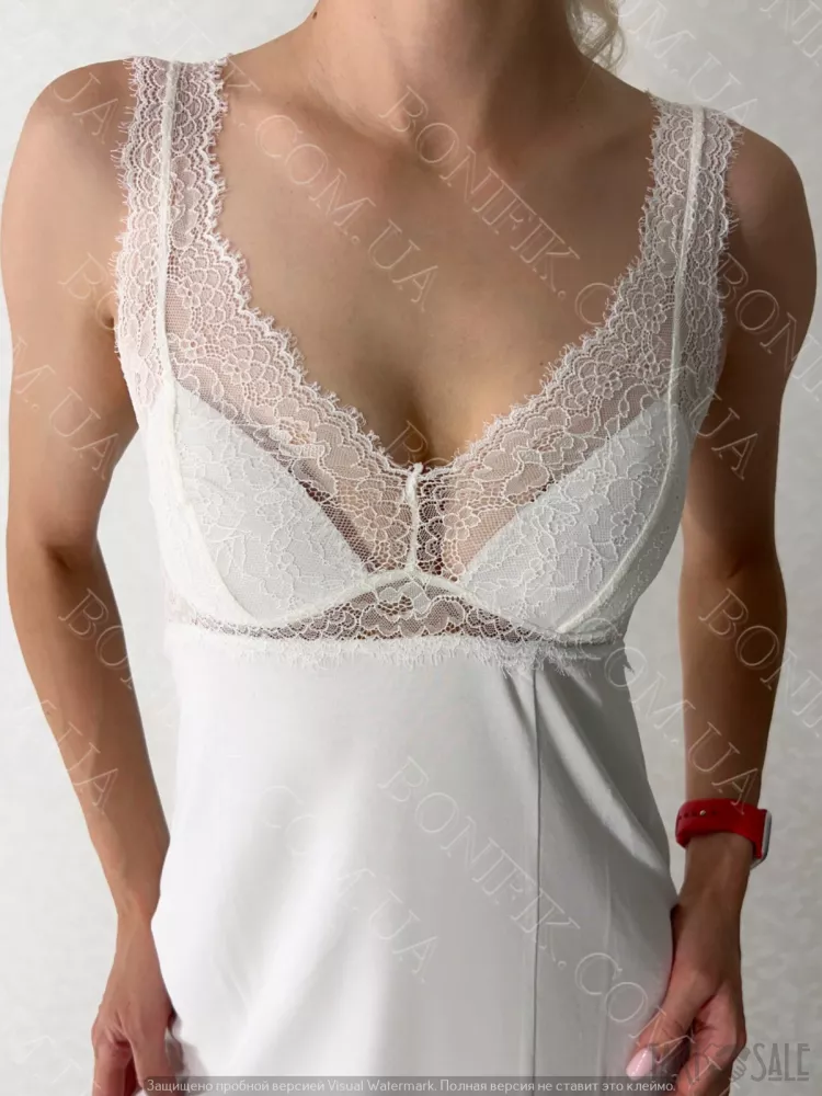 Створіть атмосферу жіночності і витонченності з цією елегантною білою нічною сорочкою.