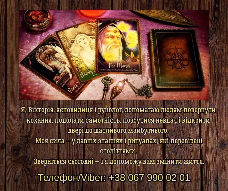 Потрібен екстрасенс у Тернополі або допомога таролога? Мене звати Вікторія, я ясновидиця, екстрасенс, рунолог і таролог, і я допомагаю людям змінювати своє життя, повертати гармонію і знаходити вихід навіть із найскладніших ситуацій.