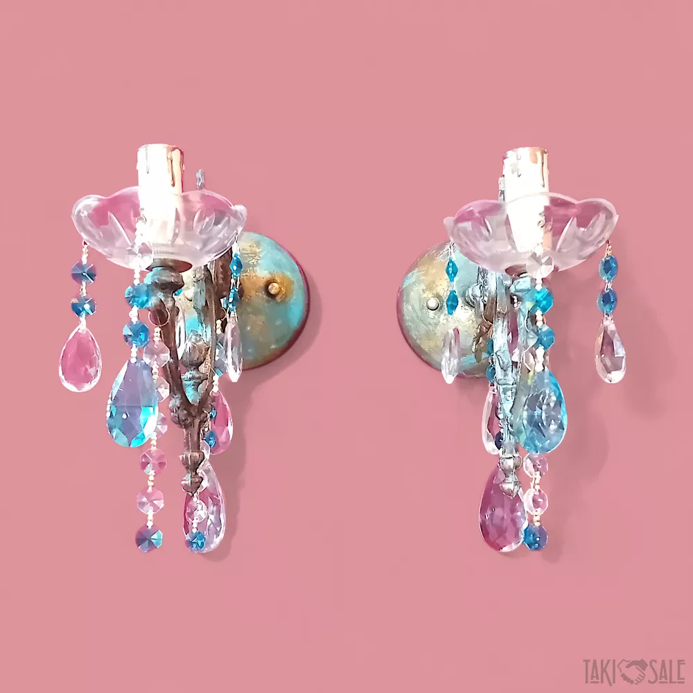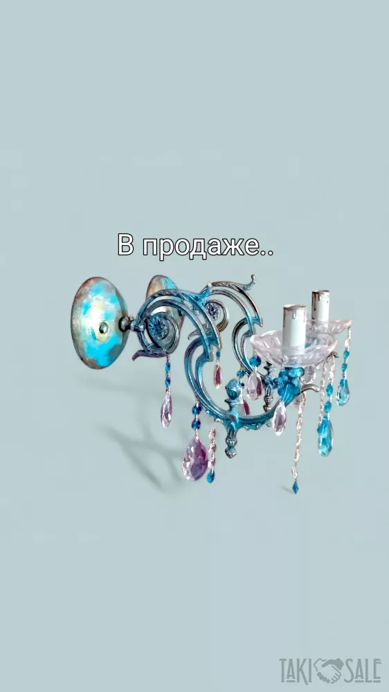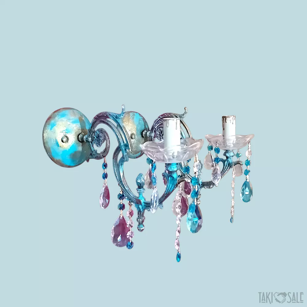Charming turquoise sconces. Vintage 1950sCharming turquoise sconces. Vintage 1950s Italy. In excellent condition. Italy. In excellent condition. Crystal and Murano glass pendants. Dimensions: extension 30 cm, height 30 cm. .
