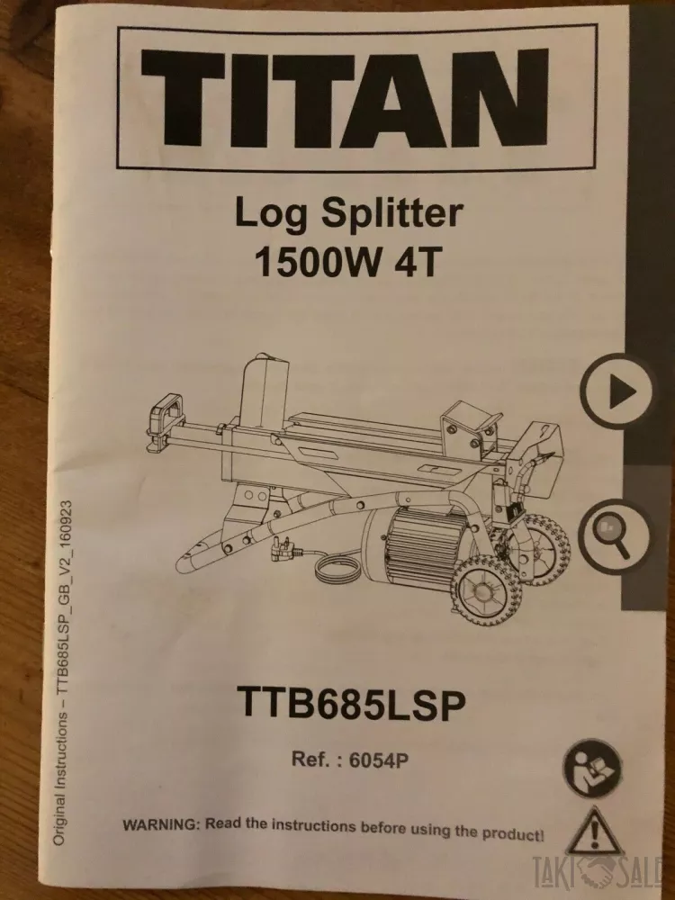Гидравлический горизонтальный дровокол TITAN TTB685LSP в хорошем рабочем состоянии.Сила давления 4 т. Мощностью 1,5 кВт.Объем масла 2,4 л. Макс.длина полена до 37 см Макс.диаметр полена до 25 см. Вес 41 кг.Работает от сети 220 В. В комплекте инструкция.
