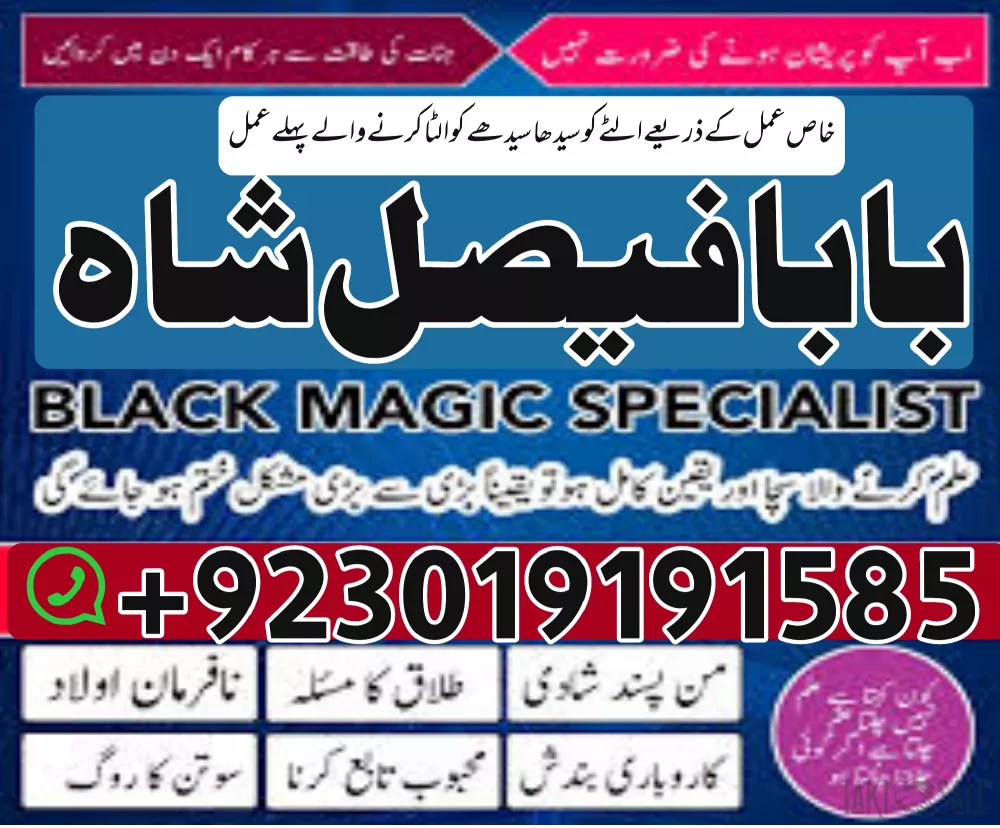 Amil Baba Faisal shah { PAK: 0301-9191585---- UAN: 0092-3019191585 is a renowned spiritual healer and master of ancient occult sciences, specializing in Black Magic, Sephi Ilam, Nori Ilam, and Voodoo Spells. With decades of experience in the mystical arts, he has gained a reputation as a powerful and trusted guide for those seeking solutions to life's most challenging problems.
