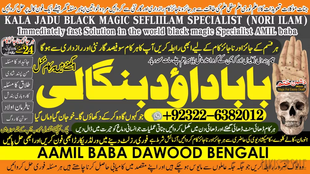 Amil Baba Dawood Bangali { PAK: 0322-6382012 ---- UAN: 0092-322-6382012} is a renowned spiritual healer and master of ancient occult sciences, specializing in Black Magic, Sephi Ilam, Nori Ilam, and Voodoo Spells. With decades of experience in the mystical arts, he has gained a reputation as a powerful and trusted guide for those seeking solutions to life's most challenging problems.