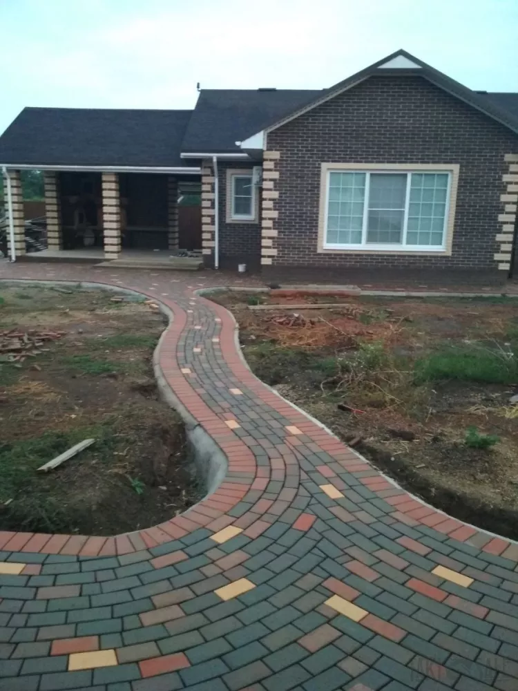 Укладка тротуарной плитки во дворе и на прилегающей территории.