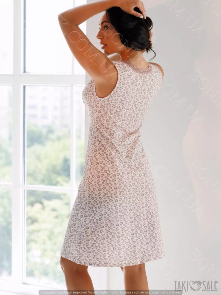 Модель виконана із м'якої, приємної до тіла тканини з ніжним принтом у виді маленьких сердечок, які надають романтичність та легкий грайливий настрій.
