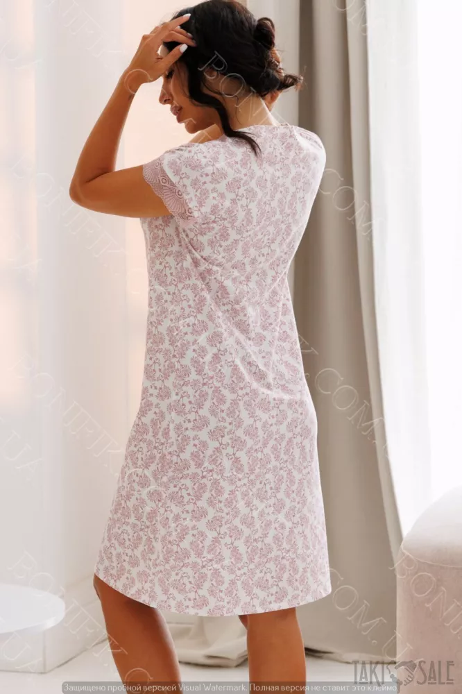 Нічнушка біла з квітковим принтом «LILA» (16718) (арт. 1369)