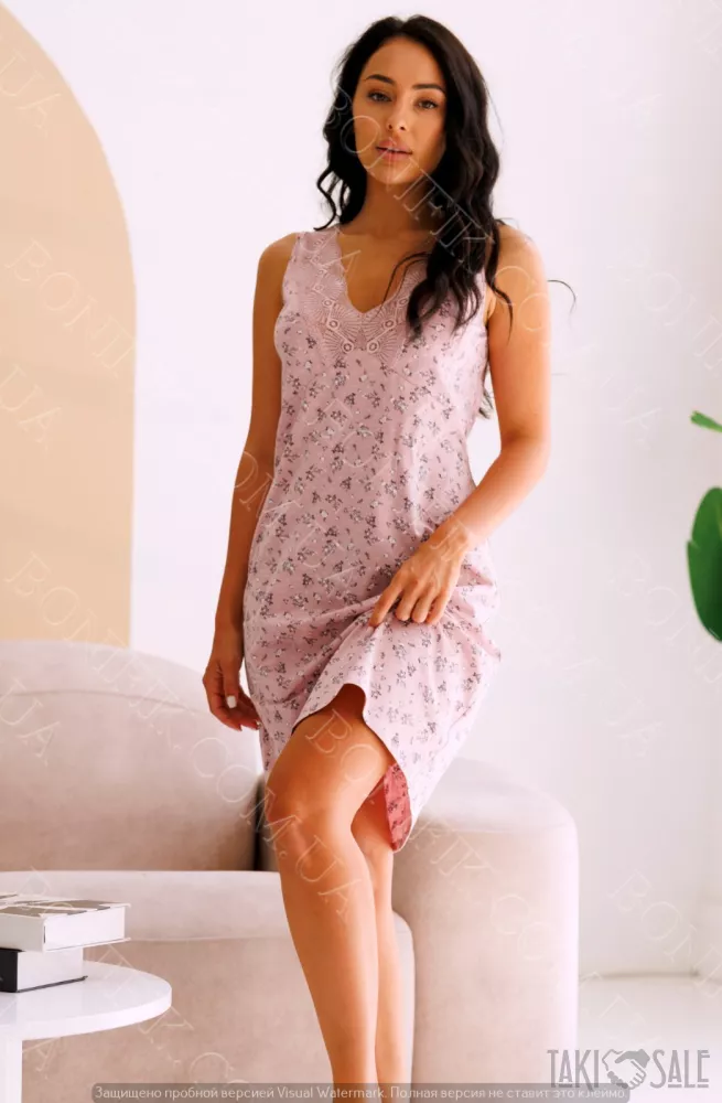 Нічна сорочка в ніжно-рожевому відтінку з витонченим квітковим малюнком створена для тих, хто цінує комфорт і жіночність в кажній миті домашнього відпочинку.