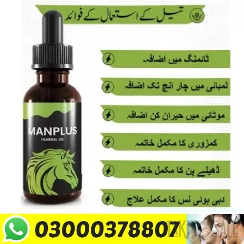 Man Plus Herbal Oil in Pakistan | 03000378807 | Buy Now! Man Plus Herbal Oil in Pakistan is a premium, potent topical formulation rooted in ancient herbal wisdom and crafted for the contemporary man. This synergistic blend harnesses the power of renowned, traditionally used herbs and essential oils, carefully infused into a nourishing base to create a fast-absorbing, non-greasy oil designed for external application. It is specifically created to support male vitality, energy, and a sense of confident well-being by targeting key meridians and areas of the body associated with vigor and circulation.