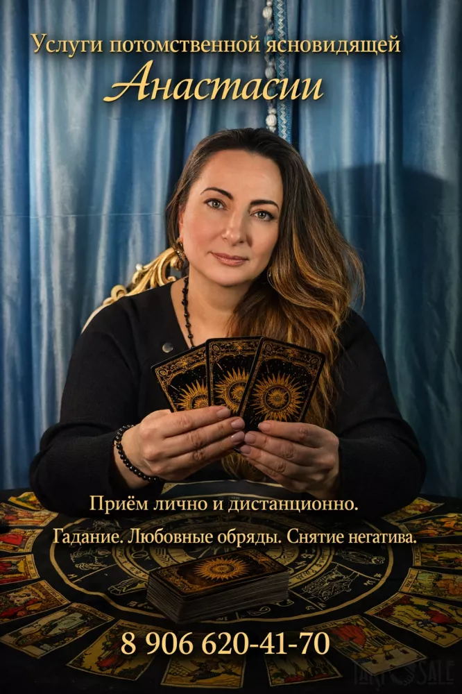 Анастасия — ясновидящая и таролог, работающая с различными жизненными ситуациями. Принимает в Москве лично, а также проводит дистанционные консультации. Все обращения рассматриваются индивидуально и строго конфиденциально.