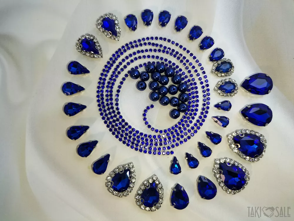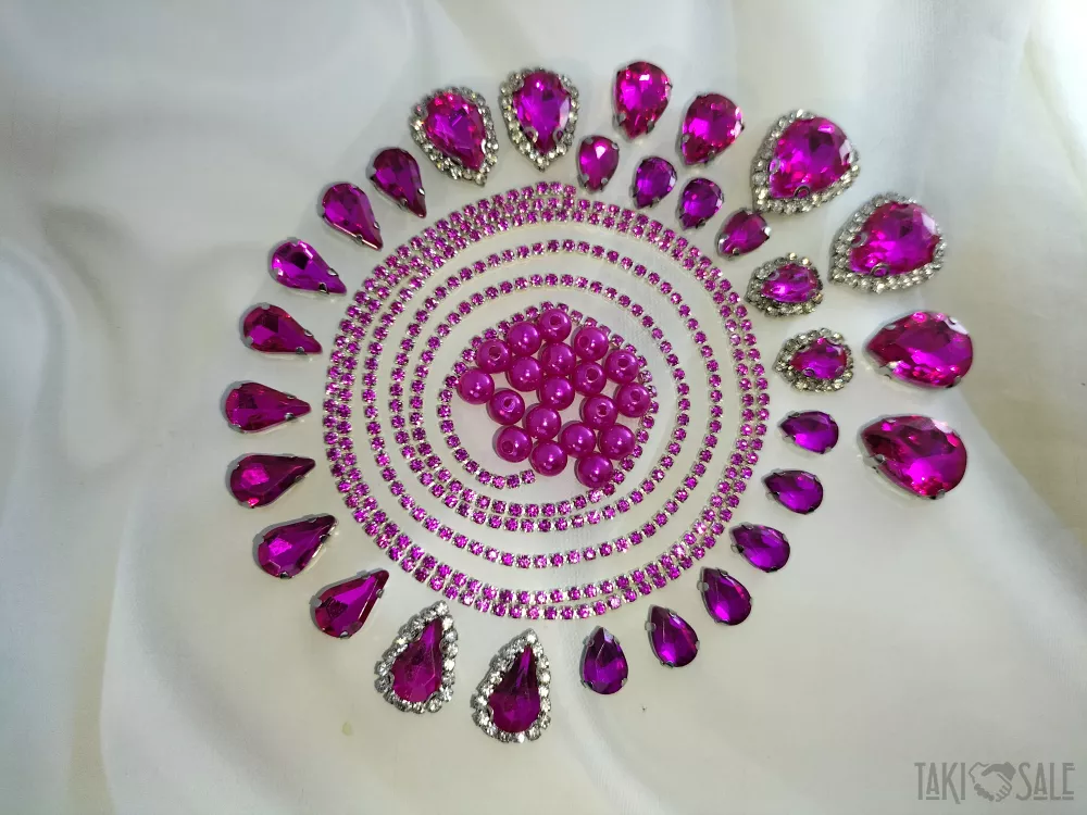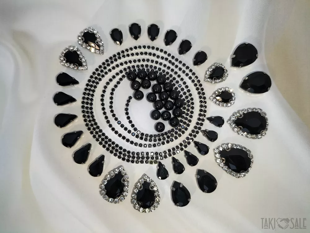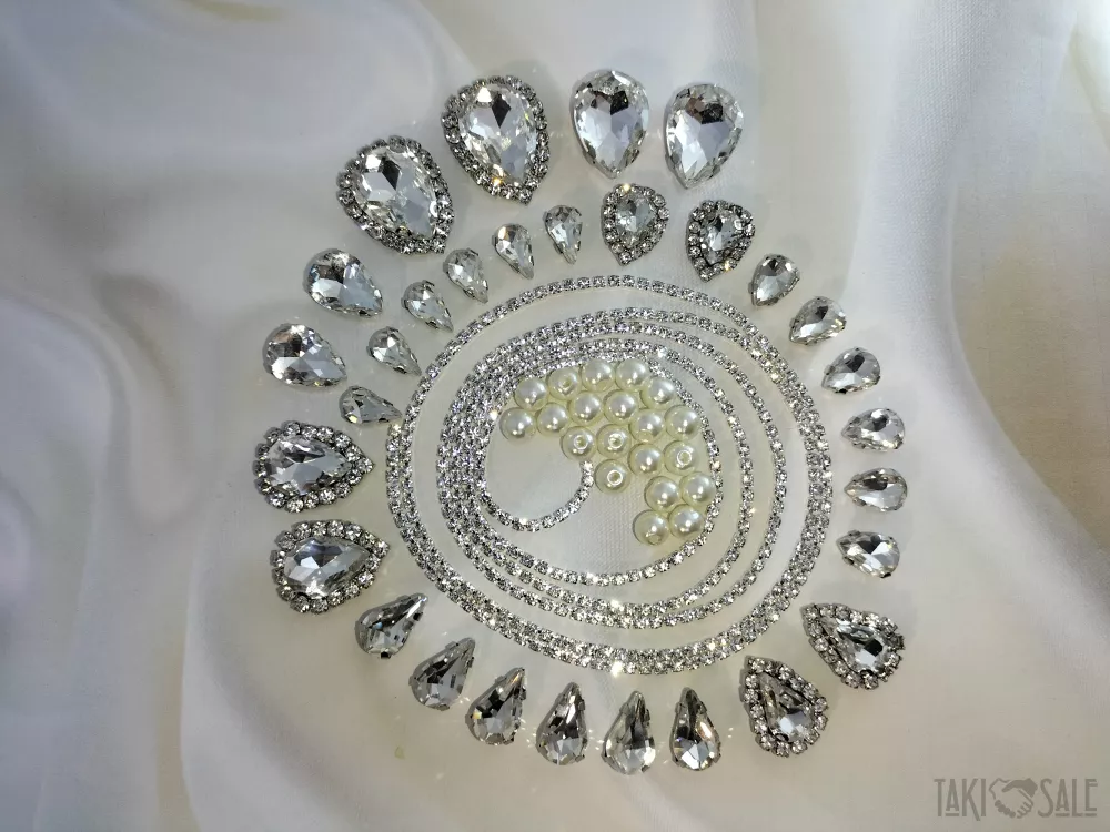 Пришивні стрази в цапах, набори зі стразовим ланцюжком і намистинками.