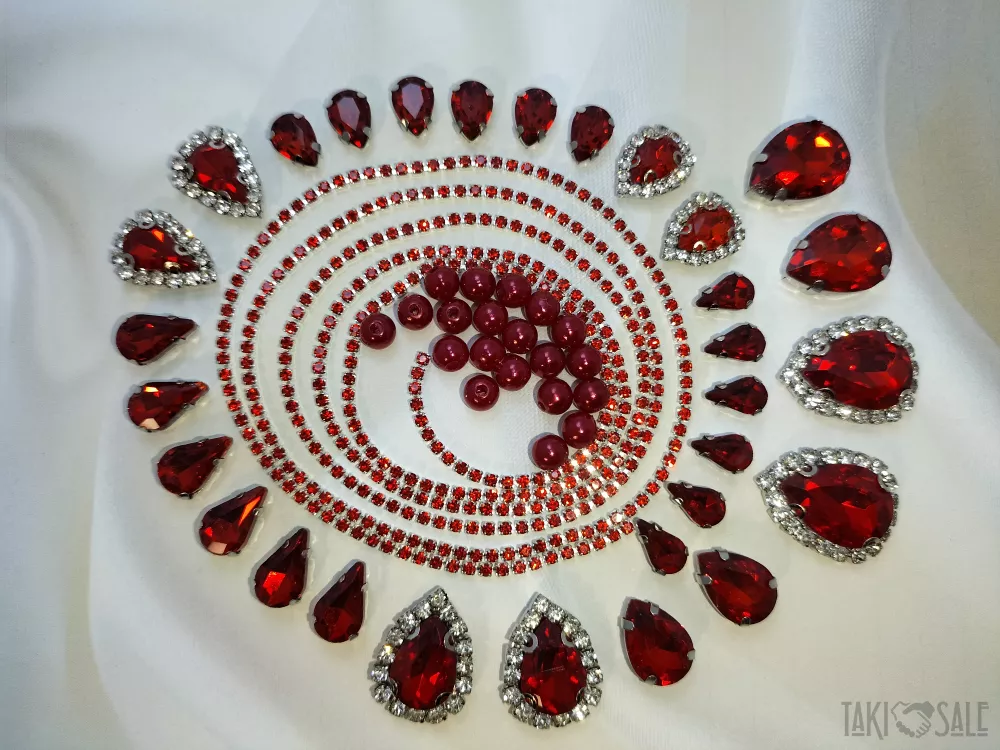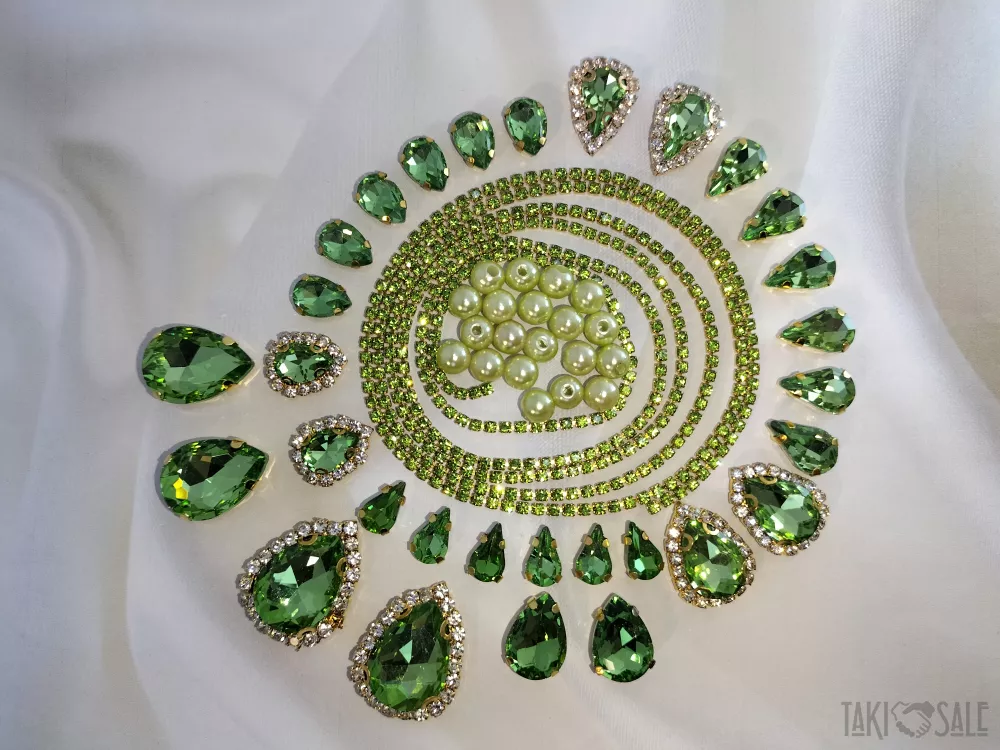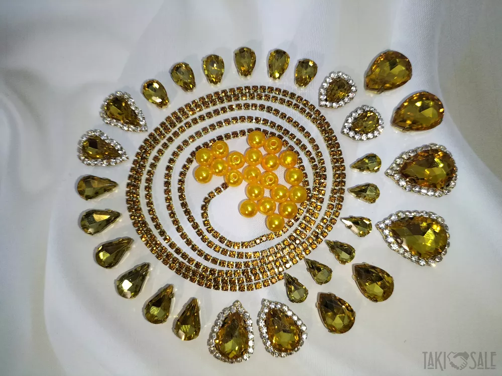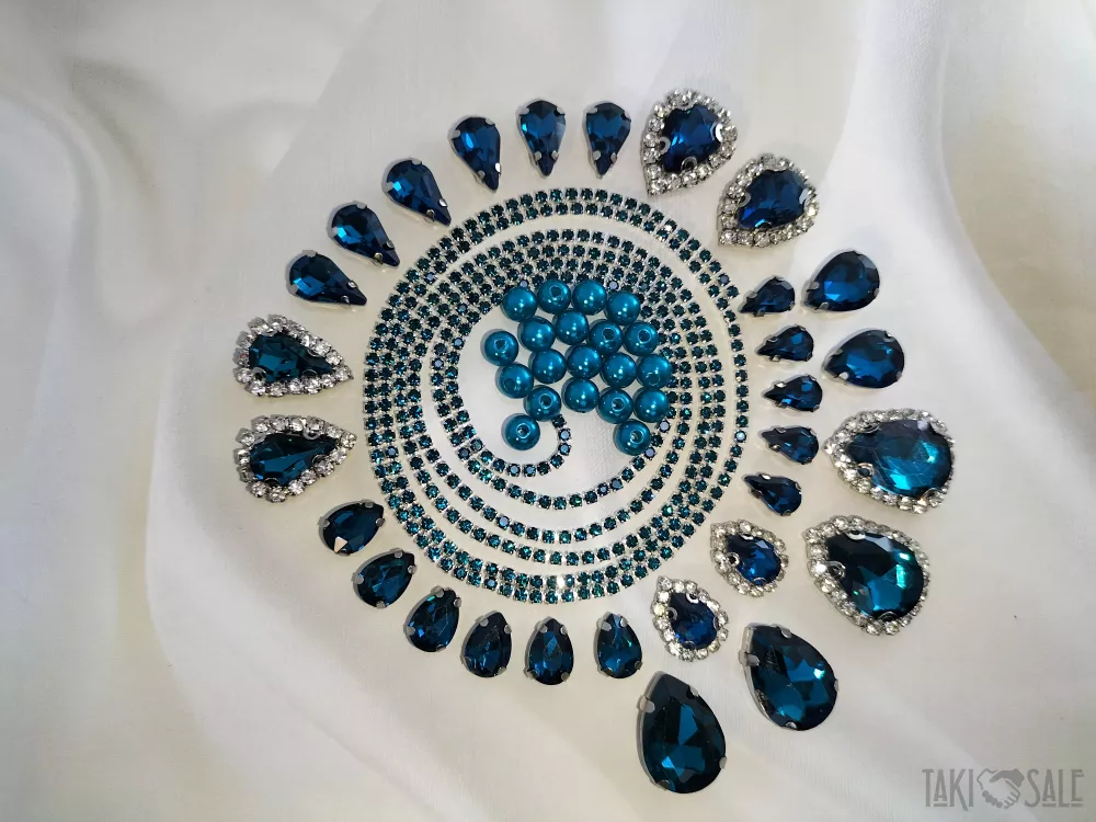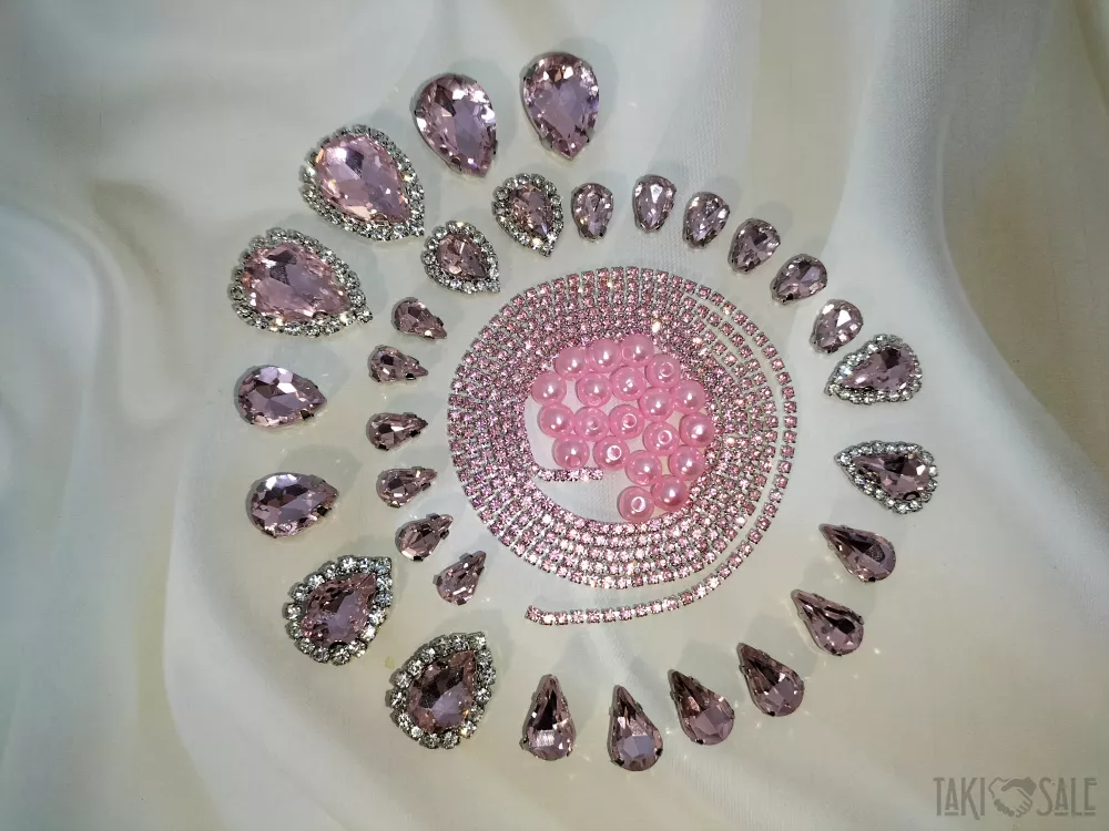 Пришивні стрази в цапах, набори зі стразовим ланцюжком і намистинками.