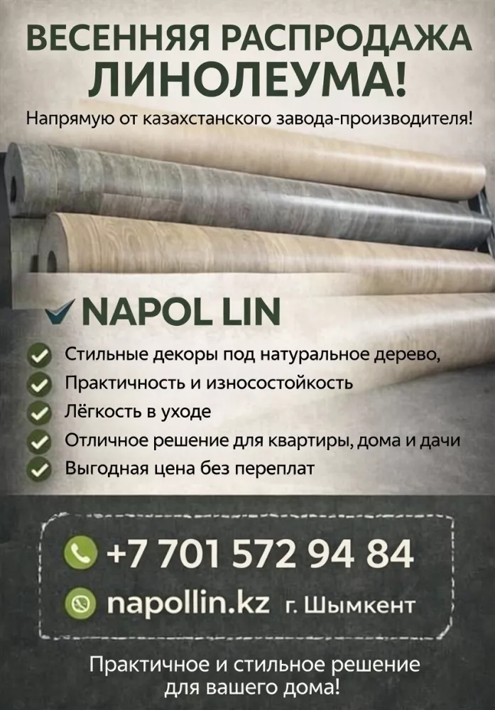 Весенняя распродажа линолеума от казахстанского завода-производителя линолеума!