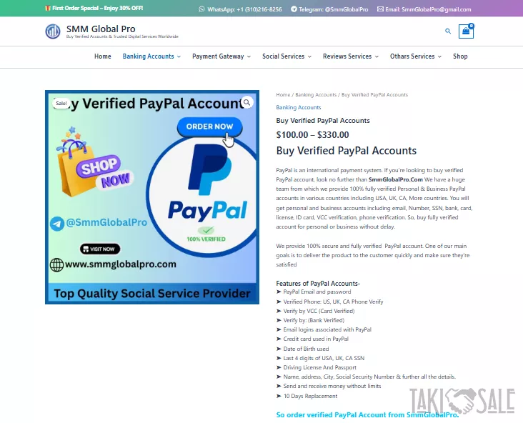 PayPal is an international payment system. If you’re looking to buy verified PayPal account, look no further than SmmGlobalPro.Com We have a huge team from which we provide 100% fully verified Personal & Business PayPal accounts in various countries including USA, UK, CA, More countries. You will get personal and business accounts including email, Number, SSN, bank, card, license, ID card, VCC verification, phone verification. So, buy fully verified account for personal or business without delay.