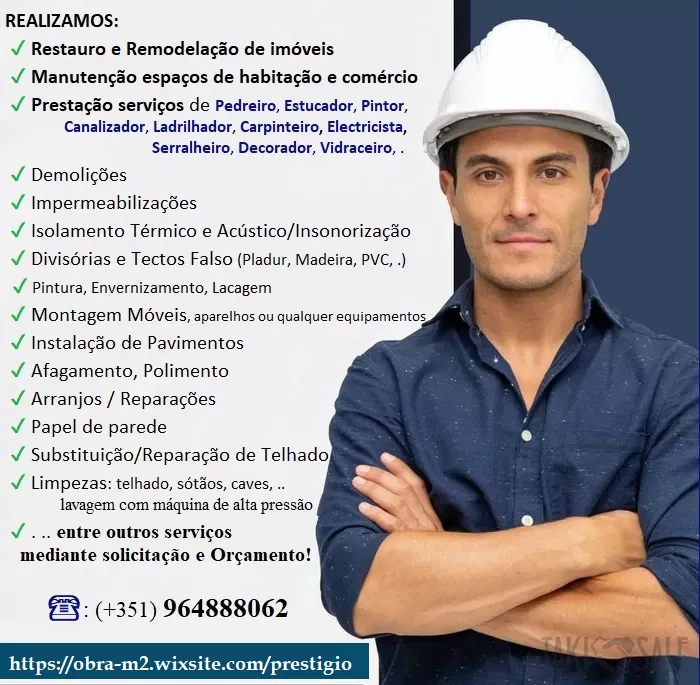 - Prestação serviços Profissional de Pedreiro, Estucador, Canalizador, Ladrilhador, Carpinteiro, Electricista, Serralheiro, Pintor, Vidraceiro, Decorador, .