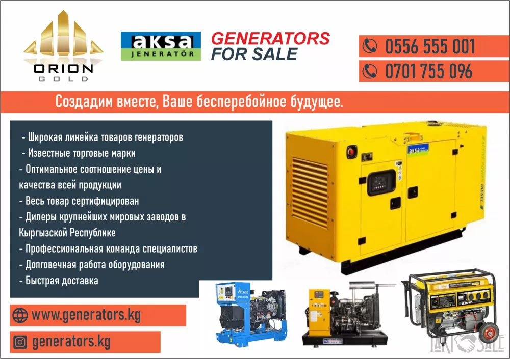 Энергетическая компания «Орион Голд» предлагает вашему вниманию генераторы, которые произведены в Турции и России, лидерами мирового производства AKSA, ALIMAR, KJ POWER, ADD POWER по выгодной цене. Гарантия качества распространяется на любой, предоставленный нами, генератор. У нас Вы можете приобрести качественные генераторы в Бишкеке от 10 кВт до 2500 кВт. Действует бесплатная доставка генераторов на дом или объект в пределах города Бишкек, а также поддержка и предоставление технической помощи 24/7. Мы предлагаем самую широкую линейку генераторов в Бишкеке, от известных торговых марок по самому оптимальному соотношению цены и качества. Все наши генераторы сертифицированы, а профессиональная команда специалистов обеспечит быструю поставку и доставку.