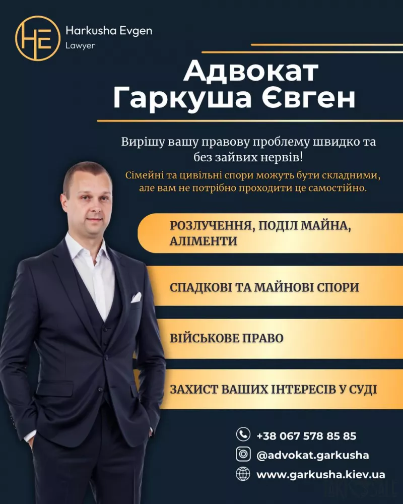 Вітаю! Мене звати Євген Гаркуша, і я – адвокат із понад 15-річним досвідом у сфері сімейного, цивільного та військового права.