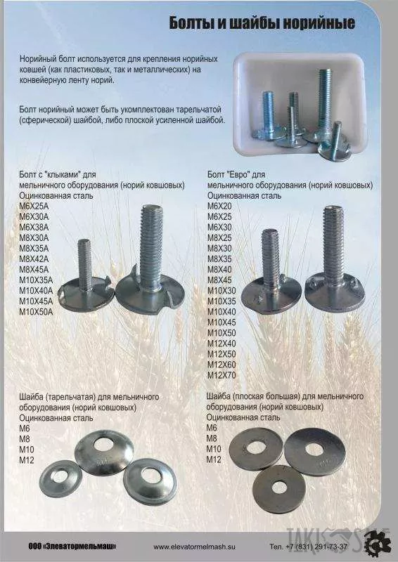 • Широкий выбор. Предлагаем болты различных размеров и мaтериалов, подходящие для любого типа норий.