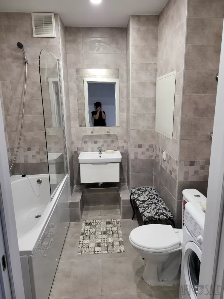 Санузел совмещен, есть бойлер, обеспечивающий горячую воду во период планового отключения, стиральная машина.