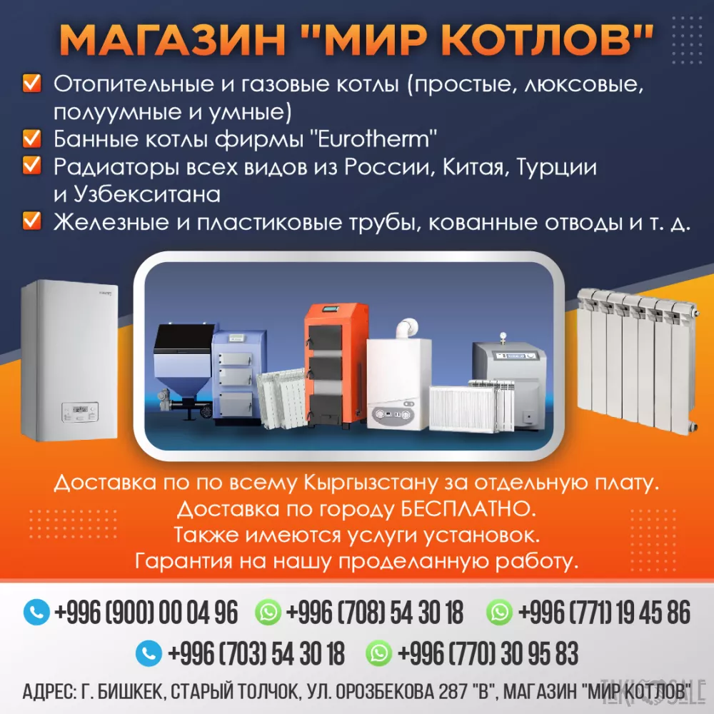 Адрес:г.Бишкек.Старый толчок,ул.Орозбекова 287 «В» магазин «Мир котлов»