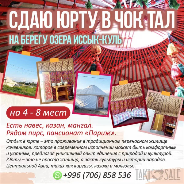 Сдаю юрту в Чок Тал, на берегу озера ИК. 4 - 8 мест.