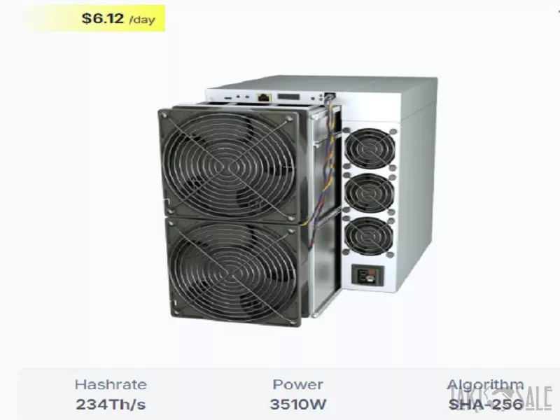 Bitmain Antminer S21 Pro (234Th) is an ASIC miner designed for SHA-256 algorithm, specifically targeting BTC (Bitcoin) . It delivers a maximum hashrate of 234Th/s while consuming 3510W of power, resulting in an energy efficiency of 15j/Th.