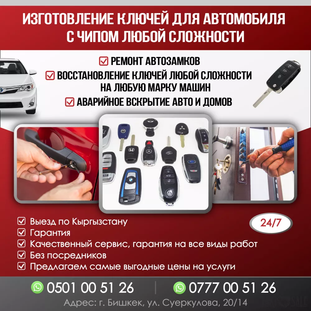 Если вы проживаете в г.Бишкек и столкнулись с утерей ключа зажигания, или решили изготовить дубликат, то обращайтесь к нам