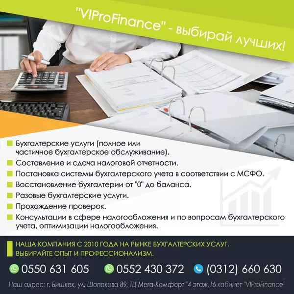 Наш адрес:г.Бишкек,ул.Шопокова 89,ТЦ»Мега-Комфорт« 4 этаж,16 кабинет »VIProFinance»