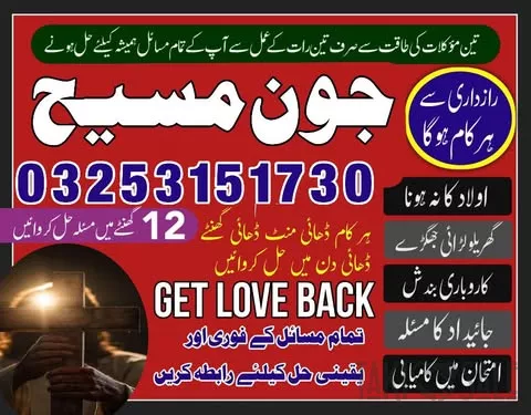 Amil Baba John Mashi{ PAK: 03253151730---- UAN: 0092-3253151730} is a renowned spiritual healer and master of ancient occult sciences, specialized in Black Magic, Sephli Ilam, Nori Ilam, and Voodoo Spells. With decades of experience in the mystical arts, he has gained reputation as a powerful and trusted guide for those seeking solutions to life's most challenging problems.