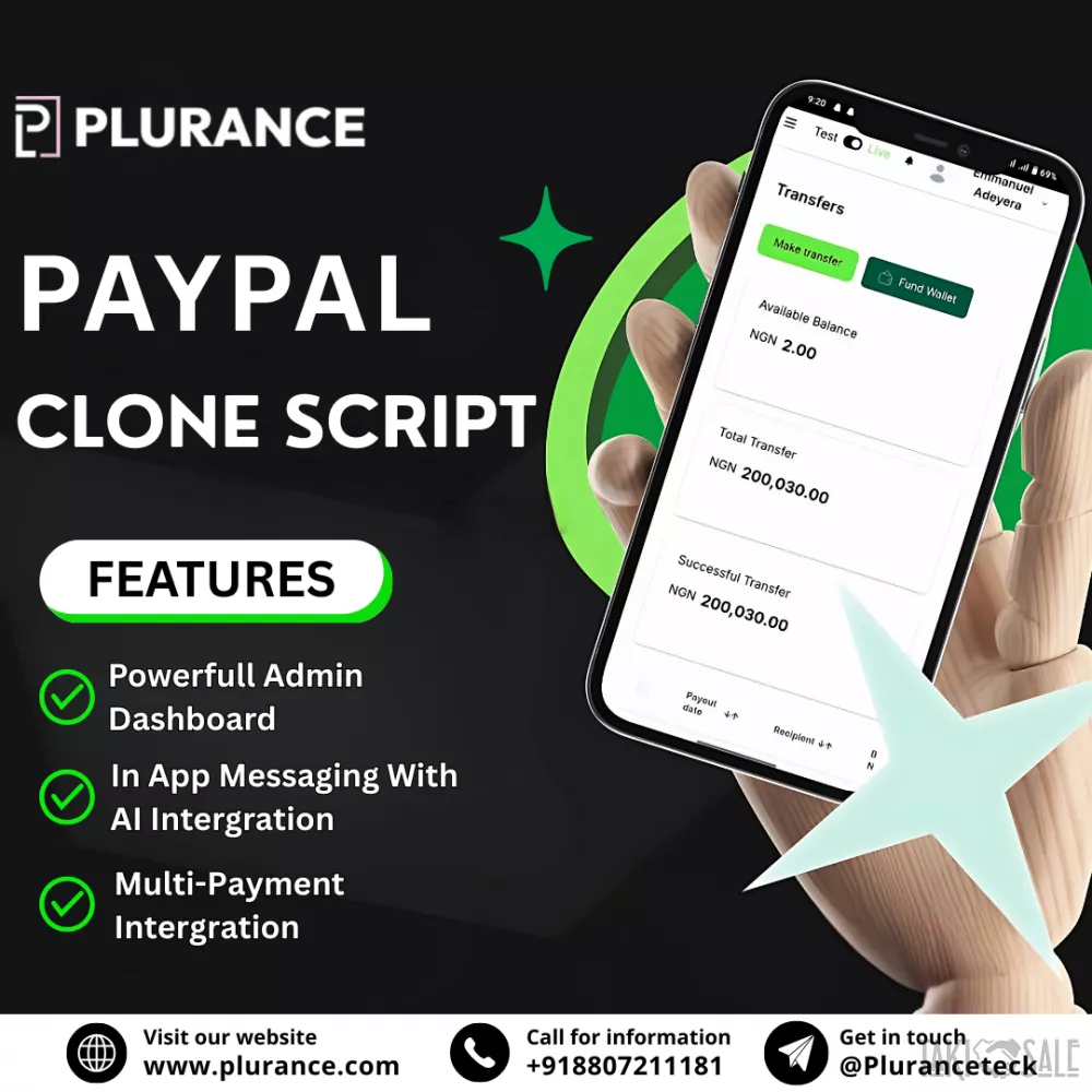 Establish your own worldwide digital payment platform utilizing Plurance’s PayPal Clone Script – a completely customizable and scalable solution tailored for fintech pioneers. Our WhiteLabel PayPal Clone Software replicates the core functionalities of PayPal, including seamless fund transfers, multi-currency support, digital wallet integration, and advanced security protocols. Whether you're a startup or an enterprise, our script ensures faster market entry with your brand identity. Plurance offers free CRM tools to manage users efficiently and provides lifetime post-launch support, ensuring your platform stays future-ready. Step into the booming digital finance space with a trusted partner by your side.