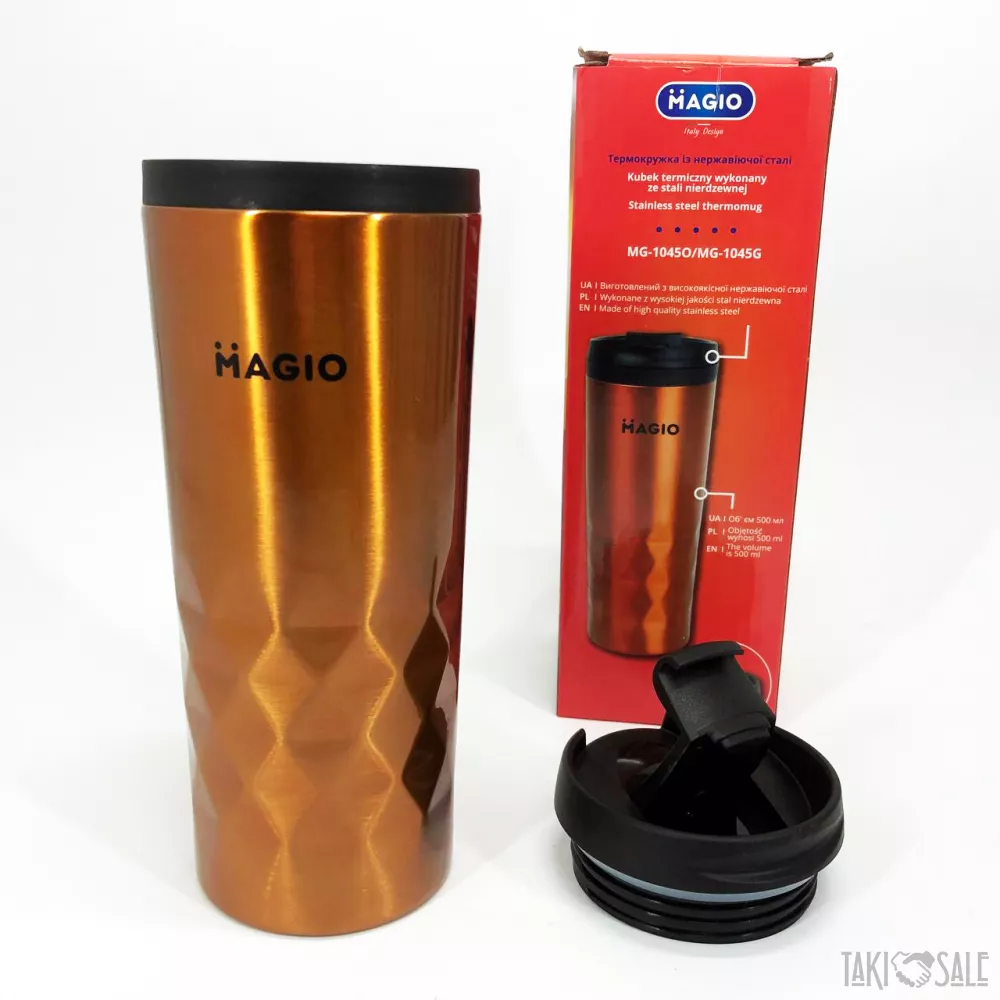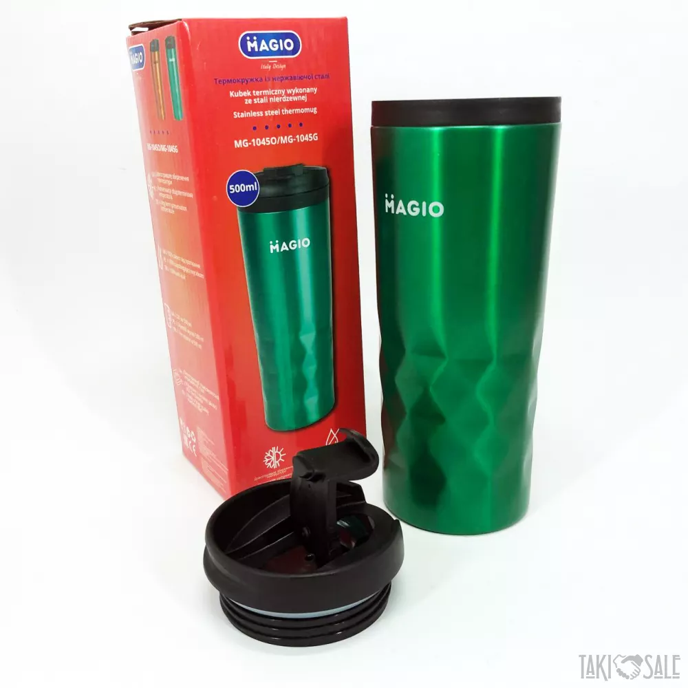Официальная гарантия 12 месяцев на ТМ Magio Термокружка Magio изготовлена в эргономичном дизайне из высококачественной нержавеющей стали, двойные стенки надолго сохранят температуру вашего напитка и пригодится в любой ситуации, поскольку способна поддерживать температуру напитка дольше любой чашки. Это идеальное решение для большого города, надежный помощник в дороге.