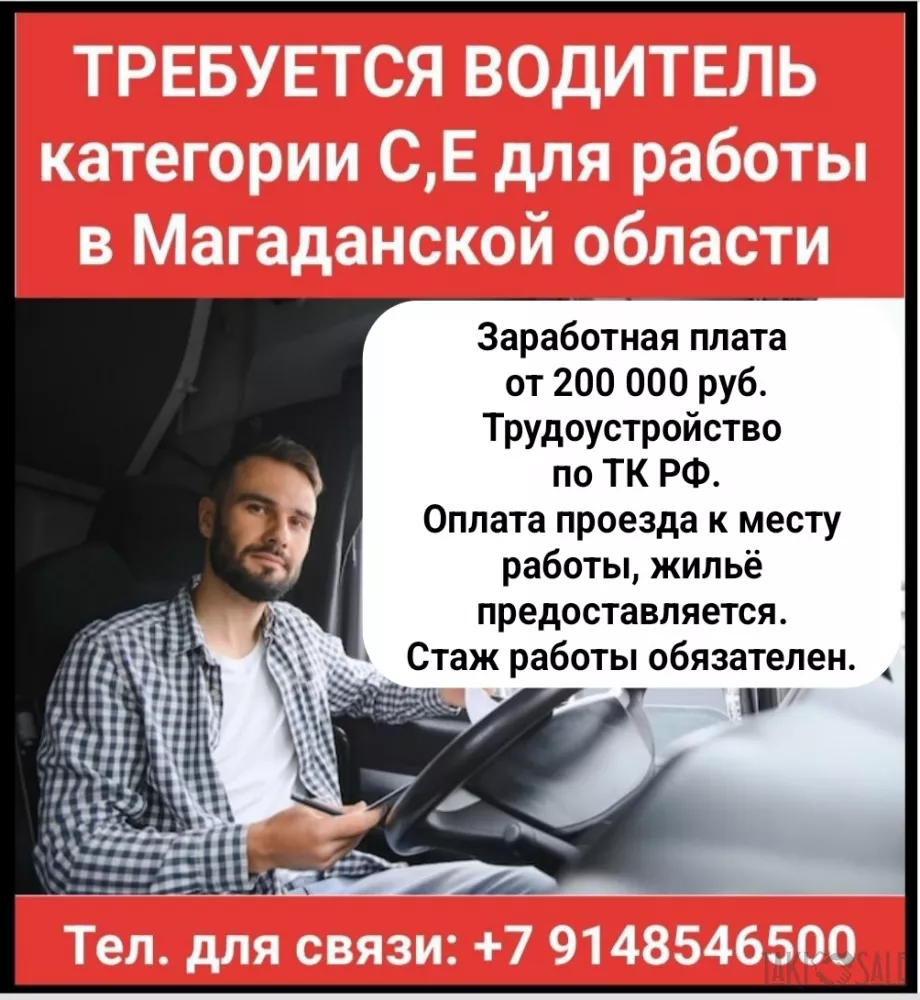 Требуется водитель категории С,Е для работы в Магаданской области.