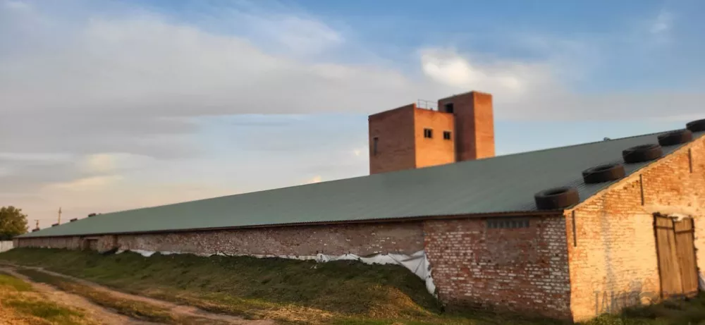 Другий склад - 650 м2, бетон, дах - шіфер. Зручний заїзд для фур, ваги 60 тн, зерноочисна система та сушка на території. Відеоспостереження.