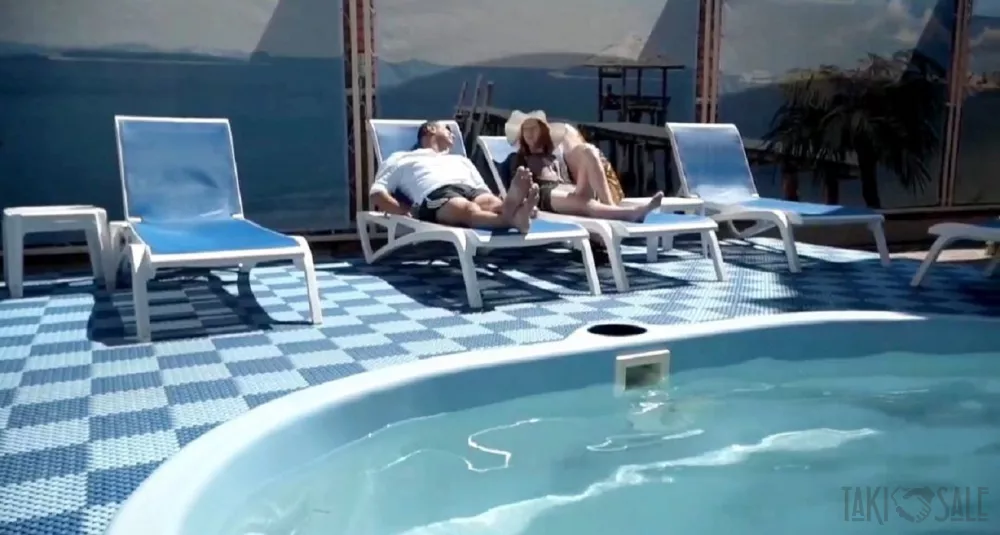 Выход на оборудованный пляж с шезлонгами и зонами отдыха.