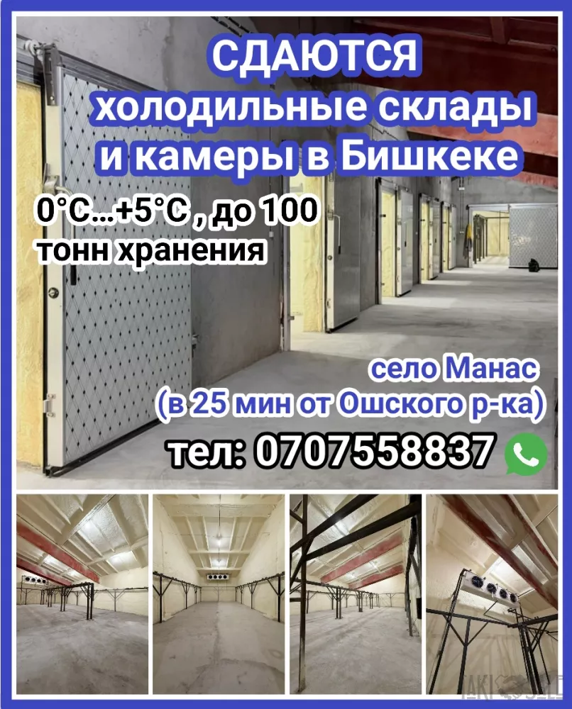 Сдаются холодильные склады и камеры в Бишкеке (0°C…+5°C), до 100 тонн хранения
