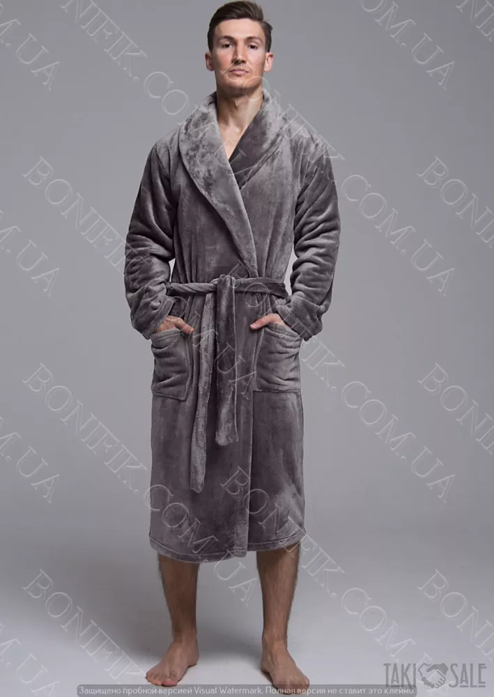 Занурьтесь в затишок і тепло з цим стильним чоловічим махровим халатом в благородному сірому кольору.