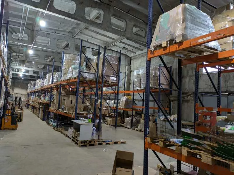 Стелажі, бетонна підлога, стеля 7.20, велика територія.