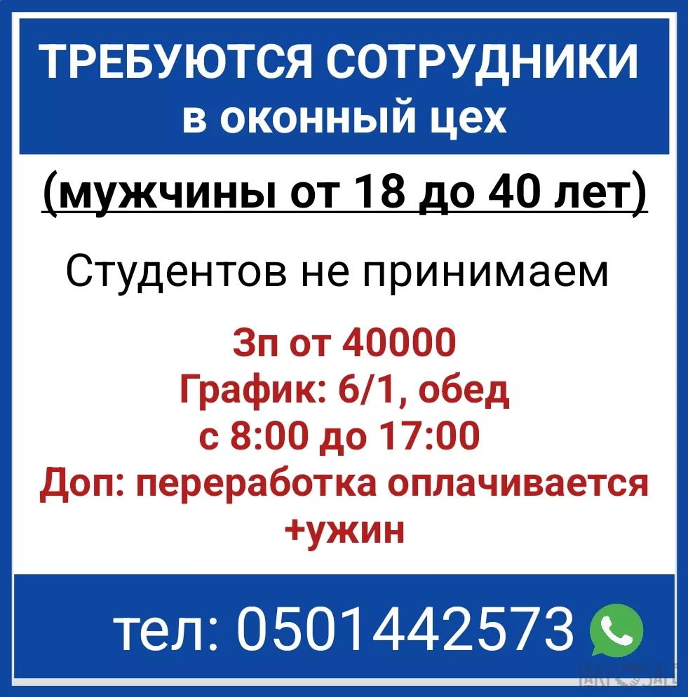 ТРЕБУЮТСЯ СОТРУДНИКИ в оконный цех (мужчины от 18 до 40 лет)