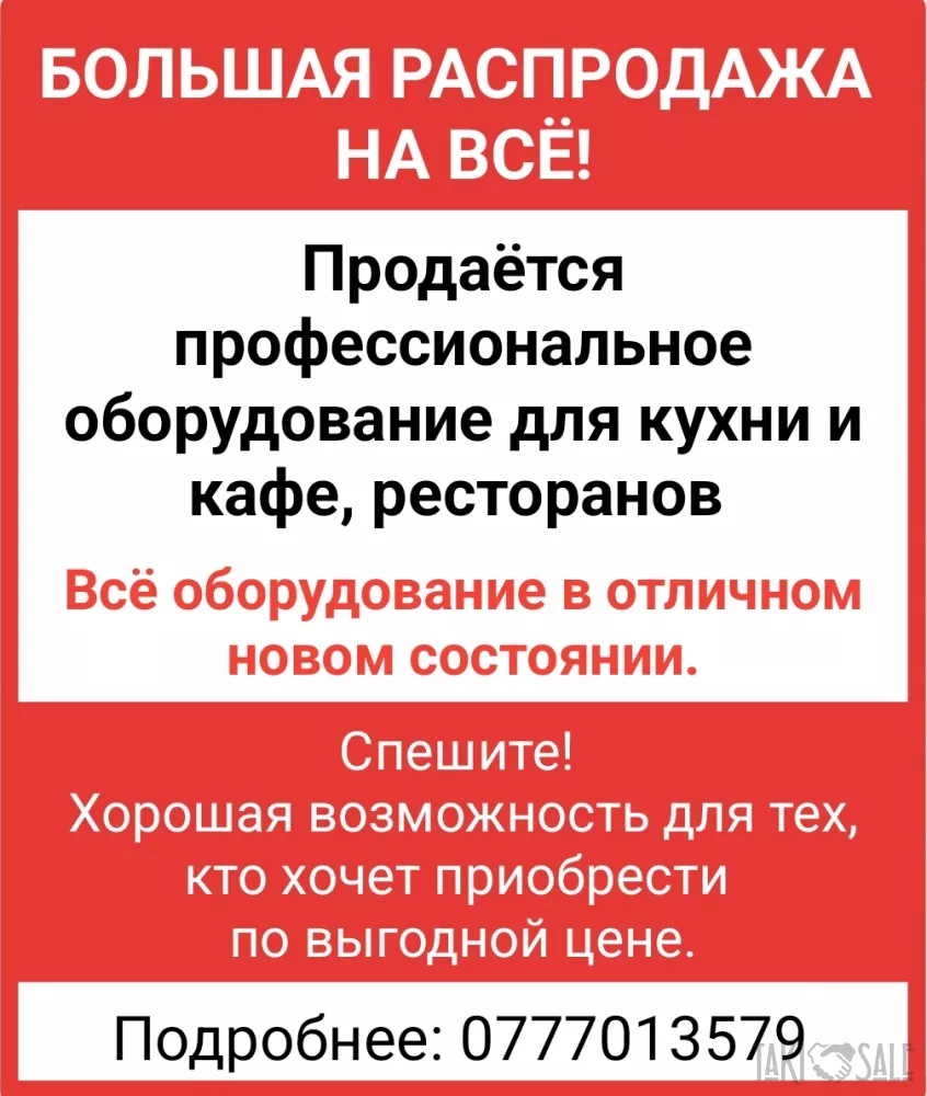 Большая распродажа на всё! Продается новое профессиональное оборудование для кухни и кафе ресторанов